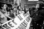 En las fotografías, mujeres con sus pechos desnudos en un acto de irreverencia, escapando a las formas de adecuación y control a los que se los ha sometido modelándolos, realzándolos, agrandándolos, mostrándolos, sujetándolos y escondiéndolos. Hoy sus pechos son resistencia política, visibilizan un cuerpo que históricamente ha sido expropiado, enajenado, secuestrado, controlado y dominado. Pechos que se atreven a decir basta, que rompen cadenas, que se muestran plácidamente decididos a ser, pechos que condenan la privatización, la cosificación, que niegan, resisten y eluden, pechos que reclaman justicia, pechos que desean la libertad, pechos de subversión, que demandan derechos.