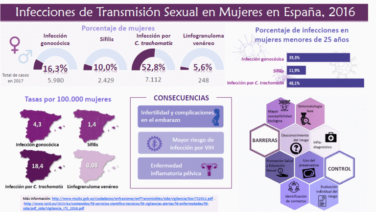 A pesar de que los casos de mujeres con infección por VIH u otras ITS son menores que en hombres, se debe incidir en realización del cribado de éstas en función de las prácticas de riesgo, ya que en muchos casos cursan de manera asintomática pasando desapercibidas.