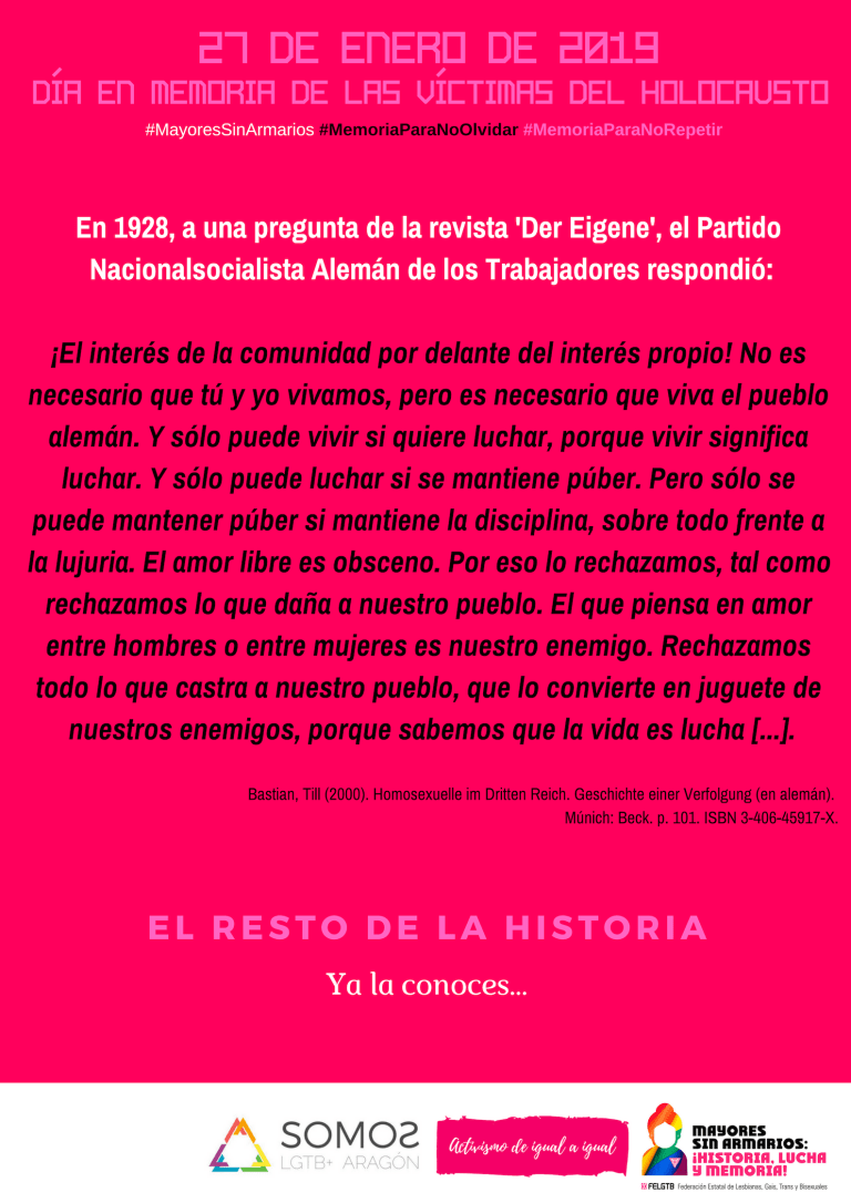 En el día en memoria de las víctimas del holocausto de un año de #MayoresSinArmarios, SOMOS reclama #MemoriaParaNoOlvidar y #MemoriaParaNoRepetir