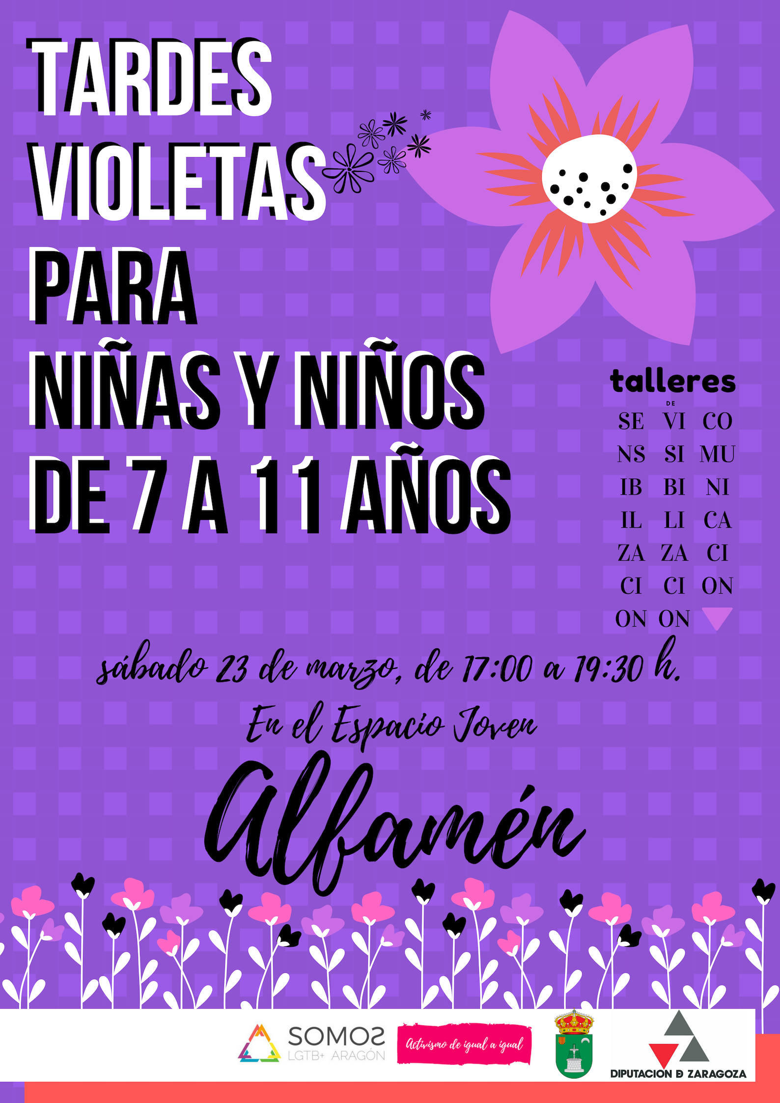 Hoy nos vemos en Alfamén con ‘Tardes violetas?, talleres y actividades de sensibilización en igualdad de género para niñas, niños y niñes de Primaria.