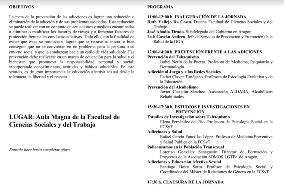 Hoy participamos en la Jornada ‘Prevención de las adicciones y educación afectiva- sexual’ con la Ponencia ‘Policonsumos en la población transexual’