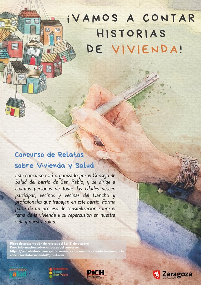 Desde el Consejo de Salud de San Pablo, en colaboración con la Oficina del Plan Integral del Casco Histórico, se ha organizado el «Concurso de Relatos de Vivienda y Salud», enmarcado en el proceso de sensibilización sobre la vivienda en el Barrio de San Pablo y su repercusión en nuestra vida y salud.