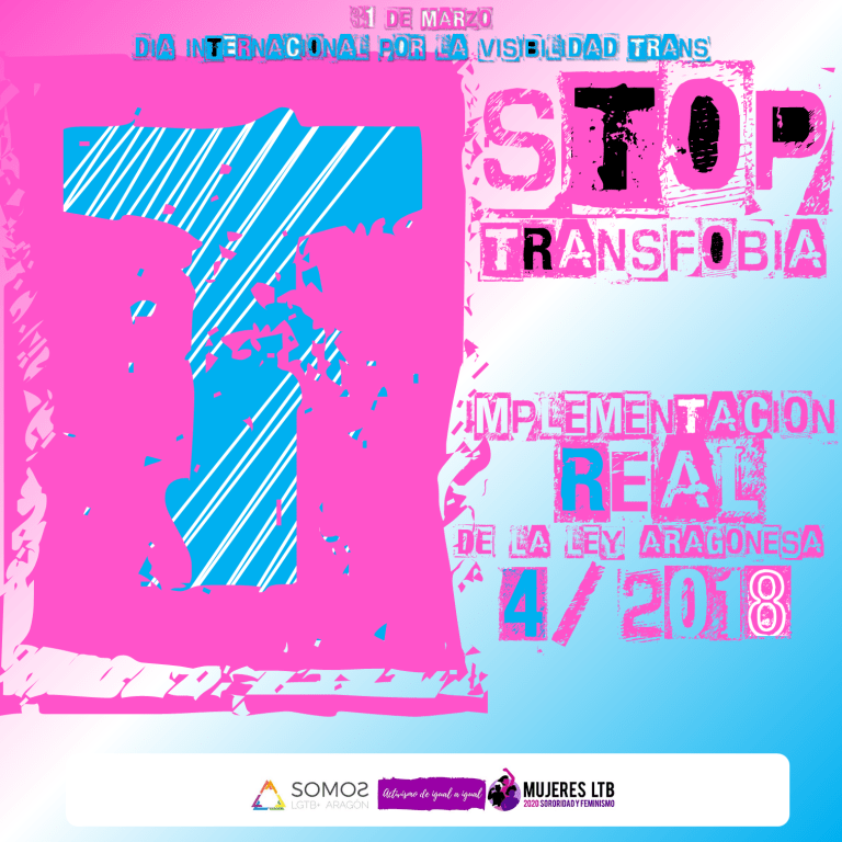 Además, exigimos al Gobierno de Aragón que de una manera clara, inequívoca y eficaz implemente la ley trans aprobada en 2018. Además, y en estos momentos de confinamiento lo estamos sufriendo en nuestras propias carnes, exigimos políticas activas que protejan a las personas más vulnerables, entre las cuales nos encontramos las personas trans, en general, y las mujeres transexuales trabajadoras del sexo particularmente.