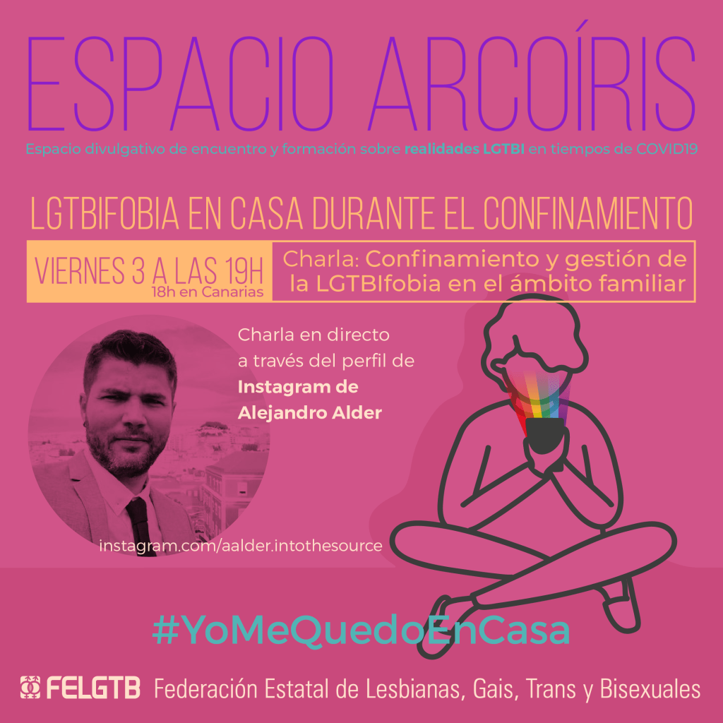 Alejandro Alder, psicólogo de FELGTB, impartirá un directo, el viernes 3 de abril, a través de Instagtram (aalder.intothesource) para orientar a estos jóvenes sobre cómo sobrellevar la situación