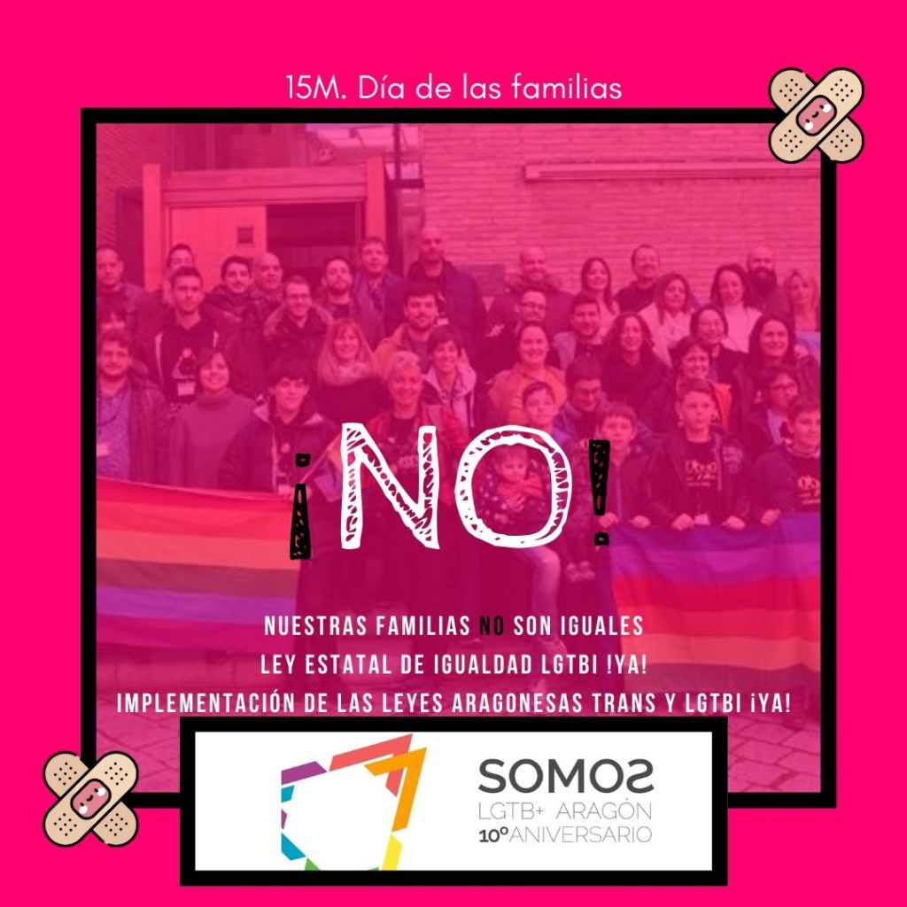En el día de las familias, SOMOS asegura que las familias LGTBI no son iguales a las familias cis-heterosexuales porque no cuentan con los mismos derechos. La diversidad pasa por entender, asegura la ONG activista, que somos diferentes y lo igualitario deben ser los derechos.