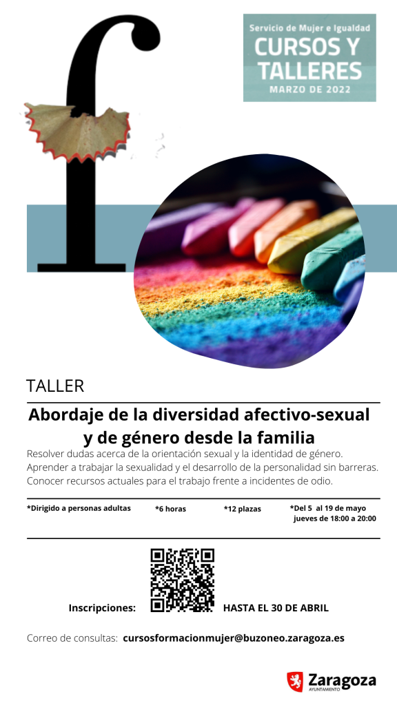 Apúntate a este nuevo taller en el que resolver dudas acerca de la diversidad sexual. y la identidad de género, hasta el 30 de abril.