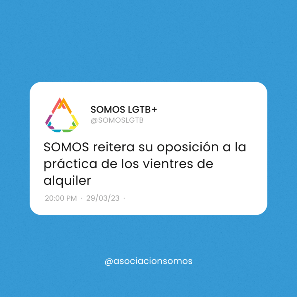 En SOMOS nos posicionamos siempre a favor de los derechos humanos y en contra de la explotación y/o vulneración de los derechos de cualquier persona. Recordando siempre que ser progenitor no es un derecho, sobre todo si para llegar a serlo hay que pasar por la explotación de una mujer o persona gestante.