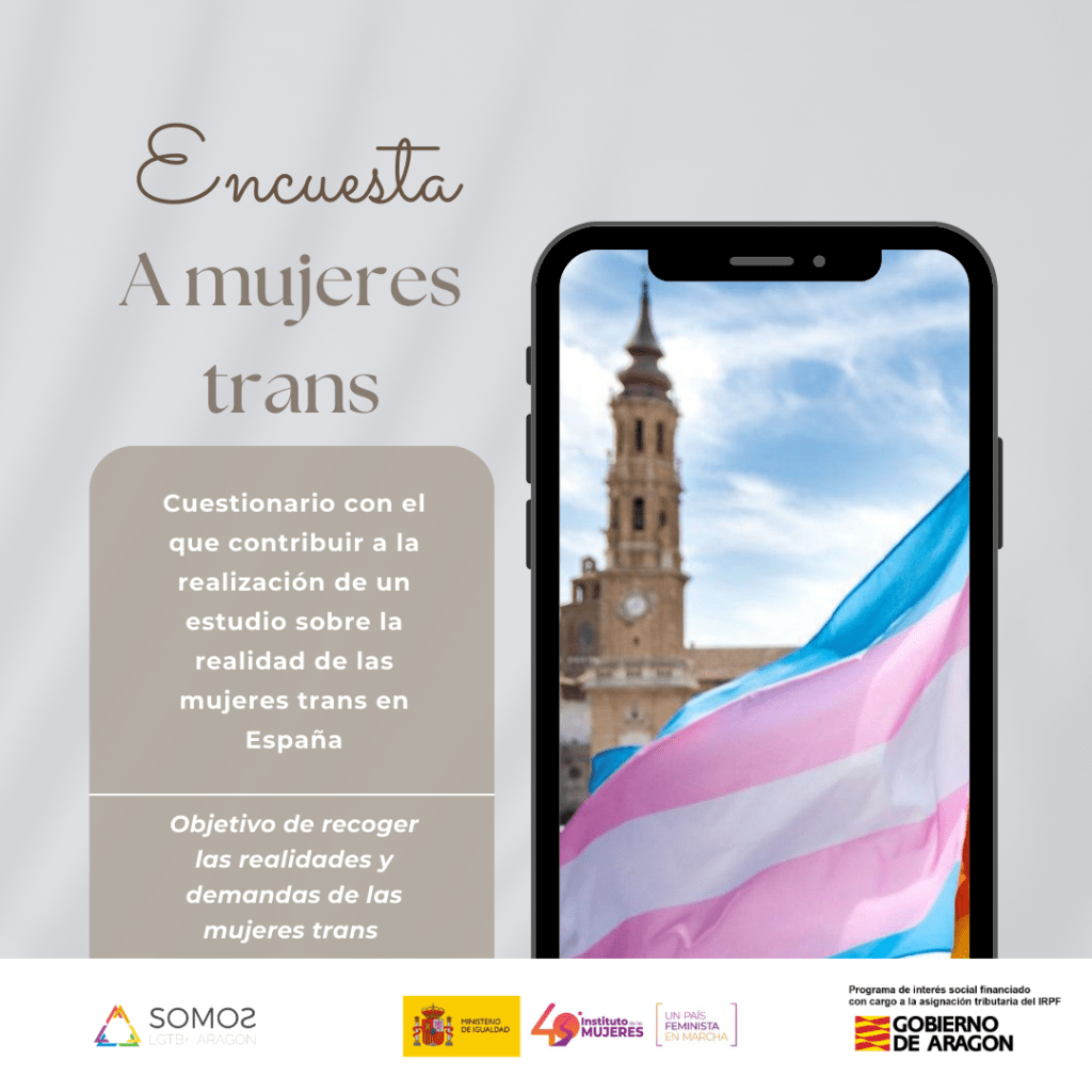 Desde la Dirección General de Diversidad Sexual y Derechos LGTBI y el Instituto de las Mujeres lanzan este cuestionario con el que contribuir a la realización de un estudio sobre la realidad de las mujeres trans en España. Su objetivo es recoger las realidades y demandas de las mujeres trans en nuestro país, para desarrollar futuras políticas públicas que se ajusten a sus necesidades reales.