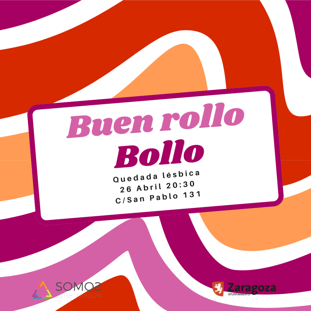 | TEMA: Buen rollo bollo Fecha y hora: 26 de Abril a las 20:30 Lugar: C/ San Pablo 131 Zaragoza TEMA: Cafés y bollos Fecha y hora: 27 de Abril a las 11:30 Lugar: C/ San Pablo 131 Zaragoza Contacto para prensa: organizacion@somoslgtb.com |