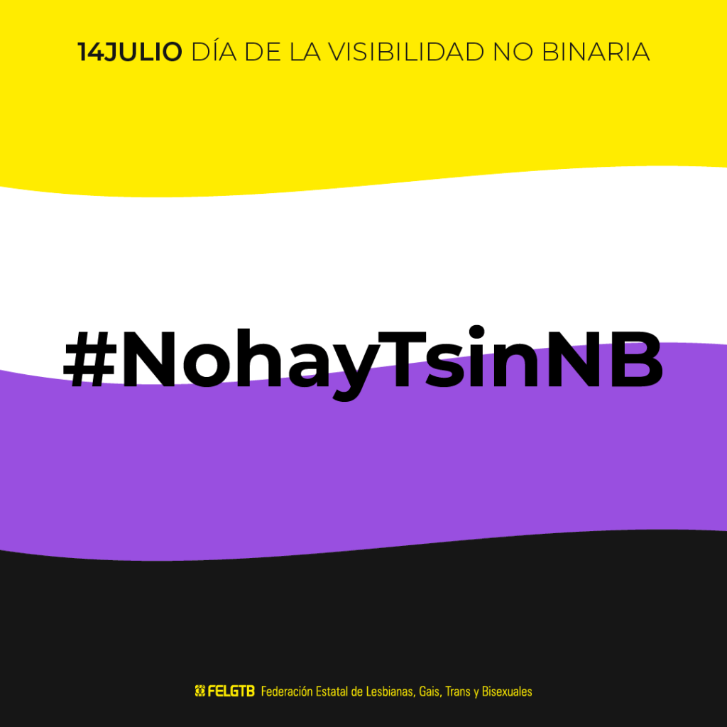 Con motivo del Día Internacional de la Visibilidad No Binaria, que se conmemora este miércoles, 14 de julio, la Federación Estatal de Lesbianas, Gais, Trans y Bisexuales (FELGTB) reivindica que las personas no binarias puedan ver reconocida su identidad en su documentación oficial a través de una tercera casilla que refleje el género no binario. Así, exige que la futura Ley Trans garantice, tras su aprobación, que estas personas puedan acceder al cambio registral en igualdad de condiciones al resto de la población trans.